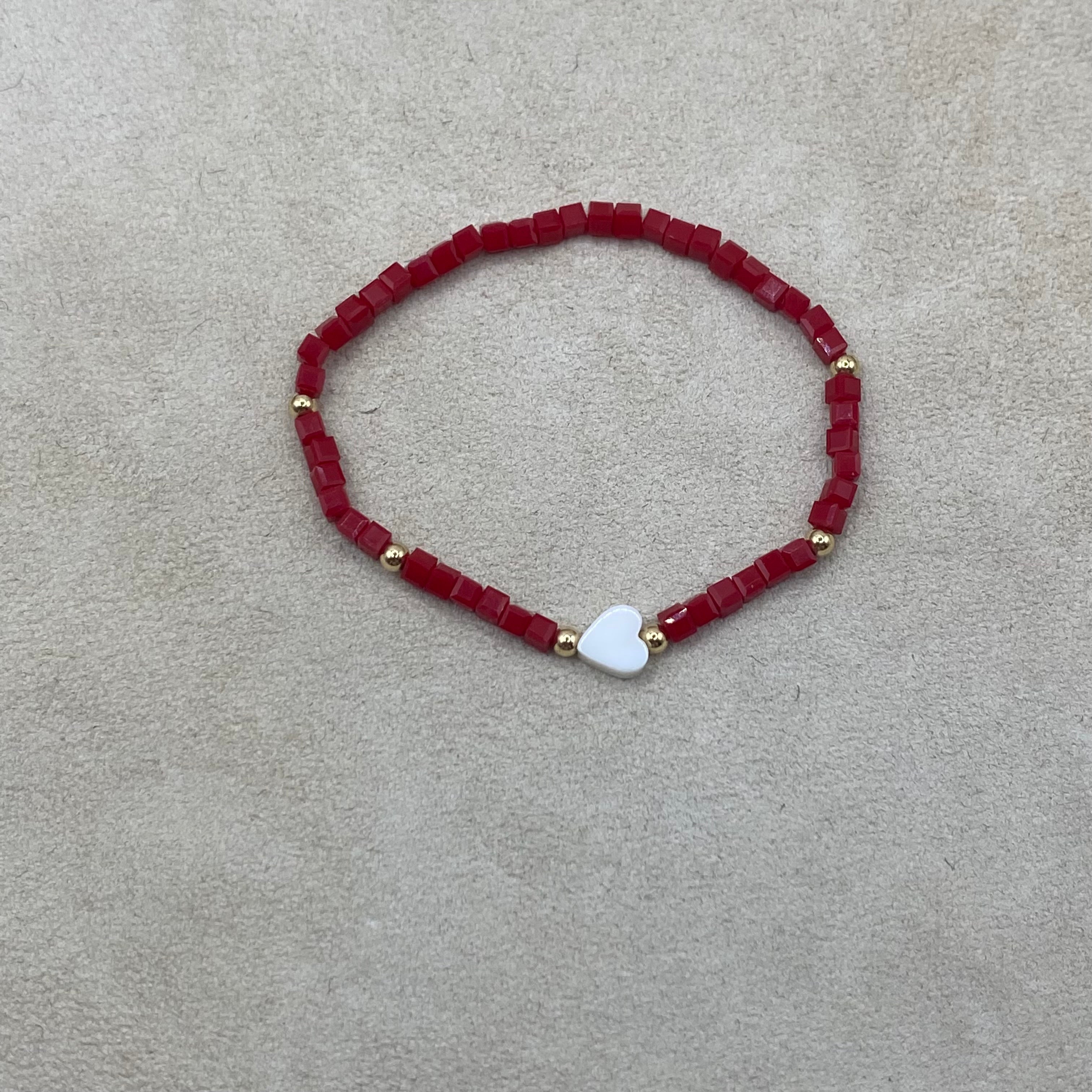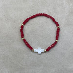 Pulsera de mostacilla roja con pelotitas de Goldfilled